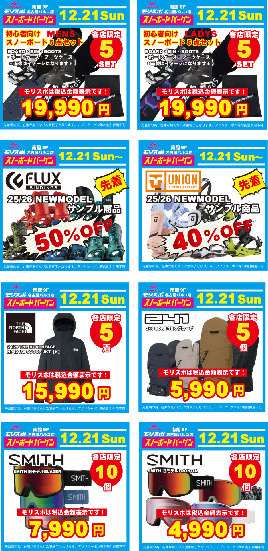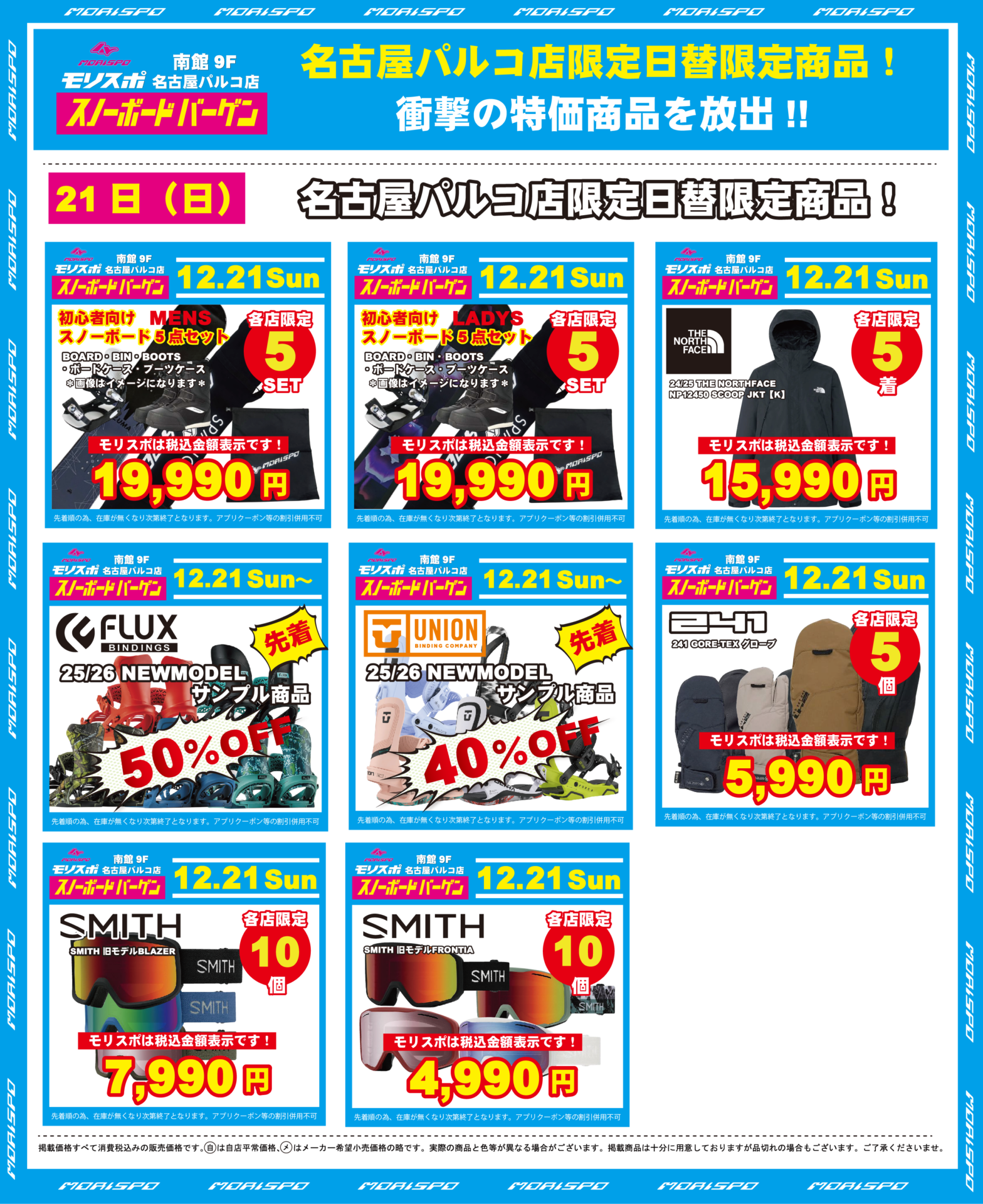モリスポ名古屋パルコオープンセール 日替わり商品 12月21日(日)