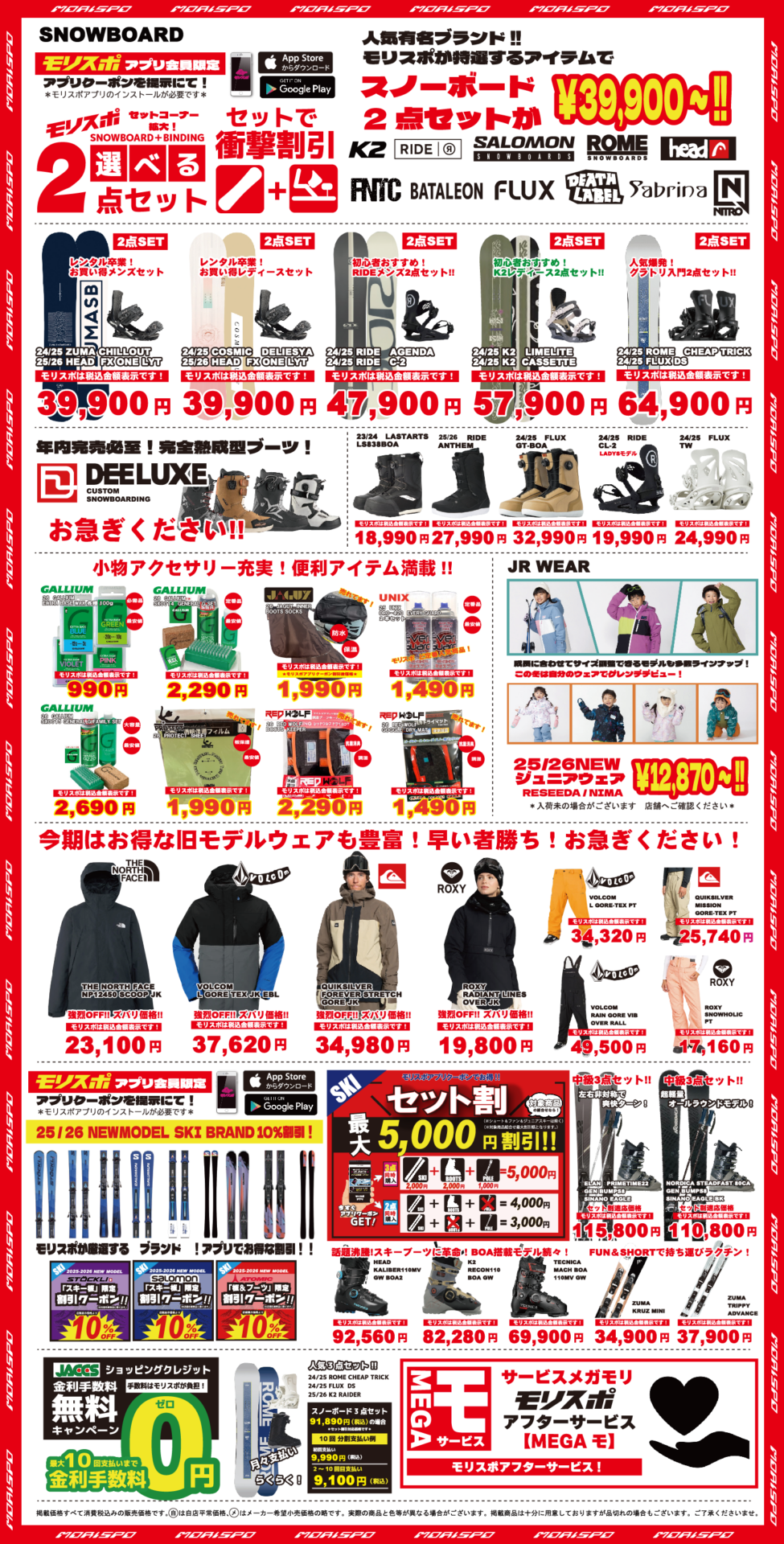 モリスポウインター各店 年末年始の営業案内をご確認ください。