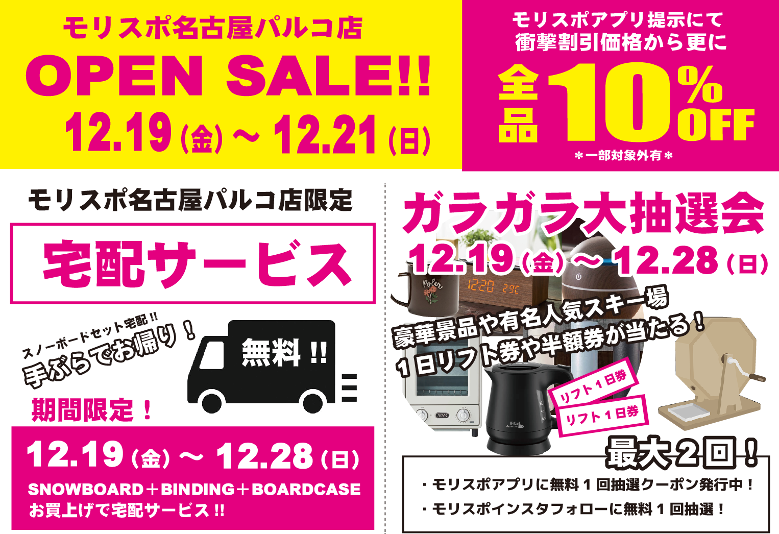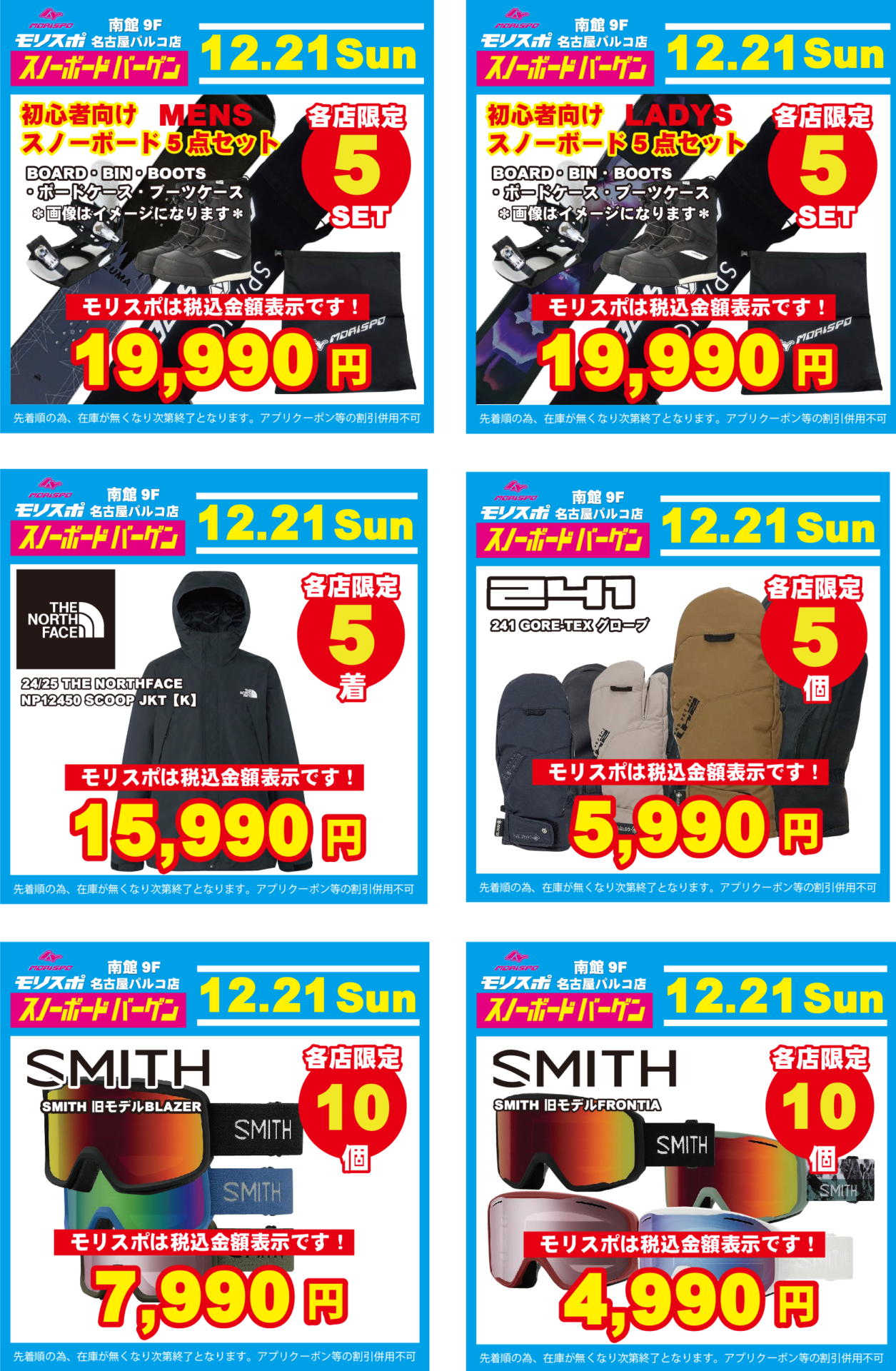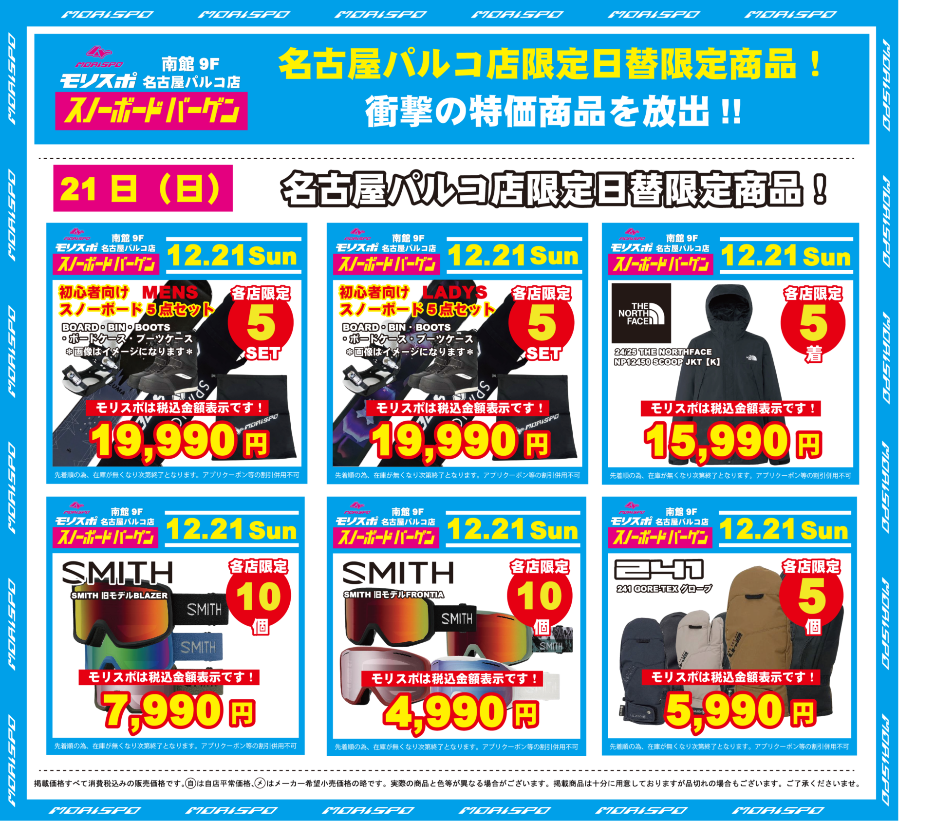 モリスポ名古屋パルコオープンセール 日替わり商品 12月21日(日)