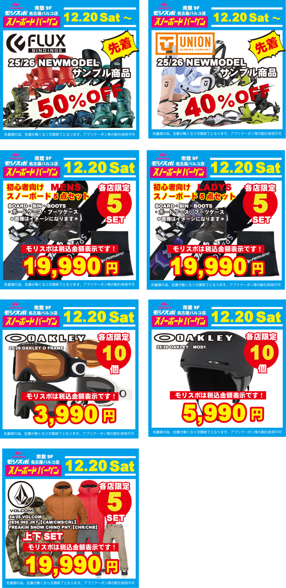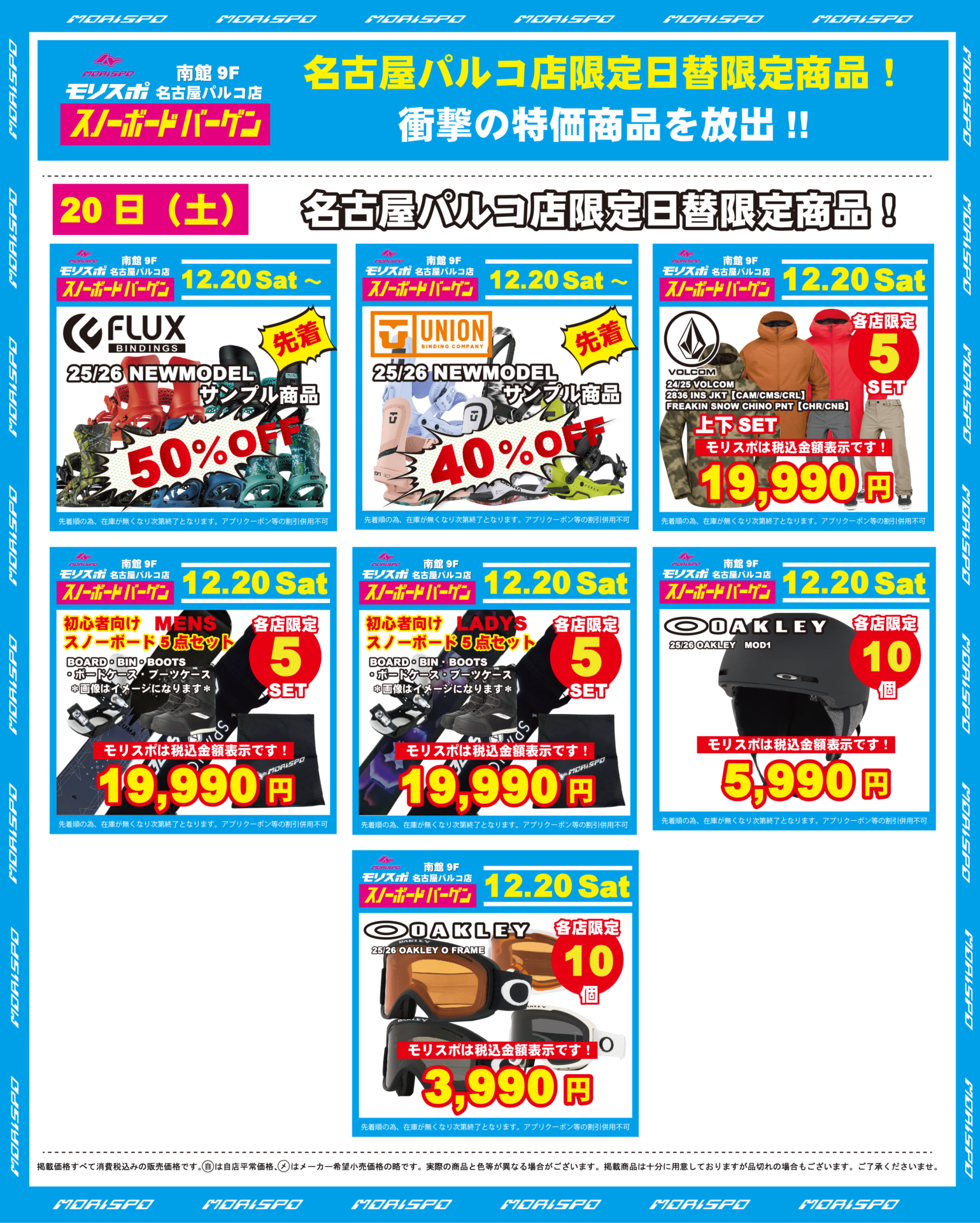 モリスポ名古屋パルコオープンセール 日替わり商品 12月20日(土)