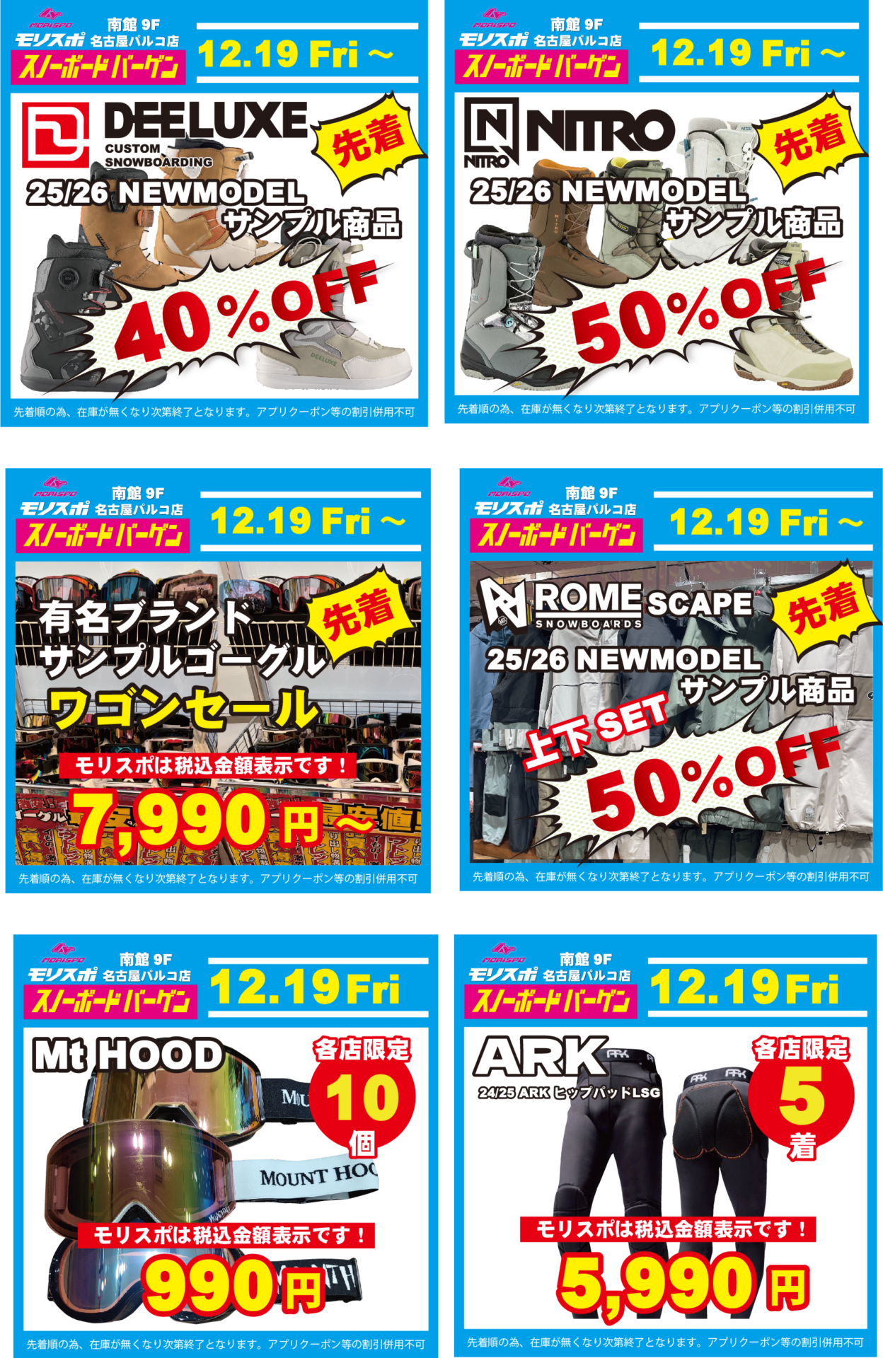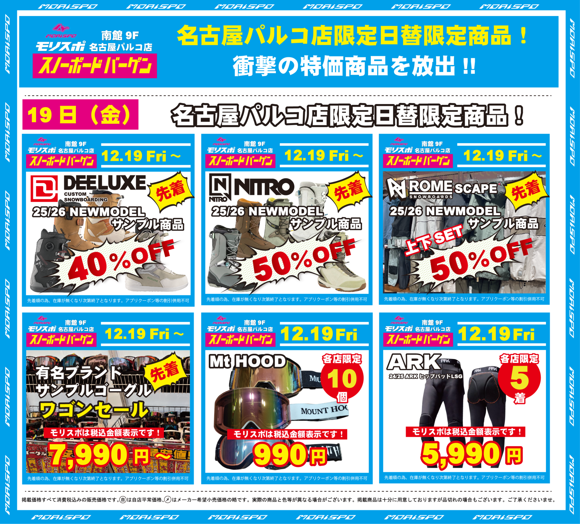 モリスポ名古屋パルコオープンセール 日替わり商品 12月19日(金)