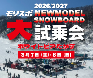 モリヤマスポーツのお知らせ 26 / 27 NEW MODEL SNOW BOARD 大試乗会 in ホワイトピアたかす モリスポ大試乗会 第1日程 2026 / 2027 Read More » 1月 20, 2026