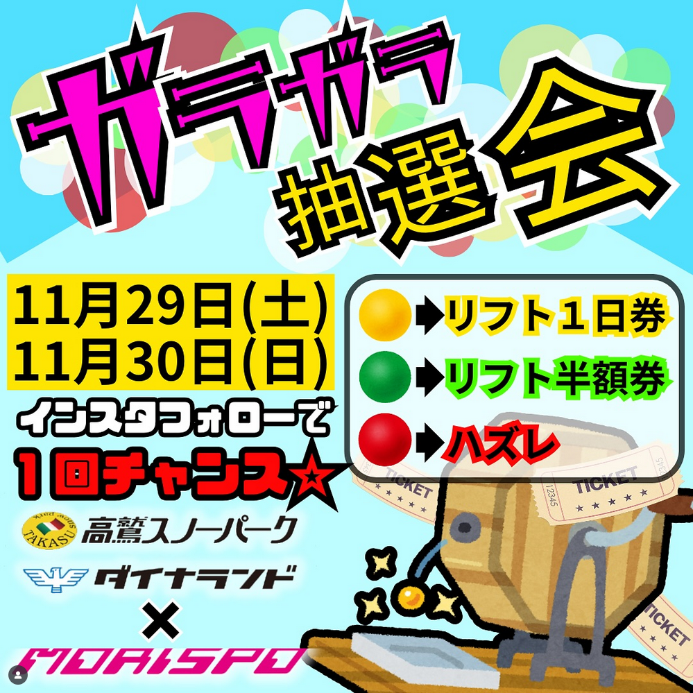 高鷲ダイナ共通リフト一日券が当たる💛💛💛
